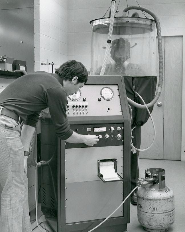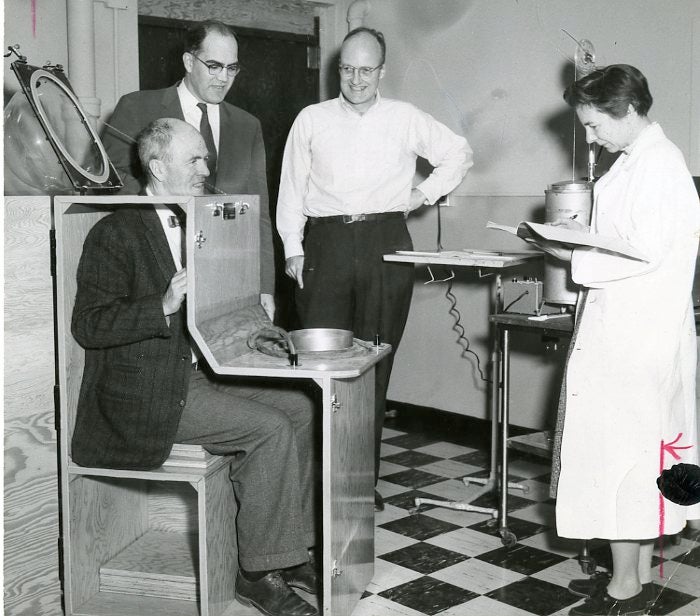 The Department focuses on peacetime research and teaching, introducing newer specialties of radiological health and air pollution control. Department faculty served as consultants to the Atomic Energy Commission and, as a result, radiation protection, aerosol physics, and air and gas cleaning technology gained greater prominence in teaching programs.