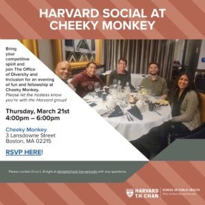 Join The Office of Diversity and Inclusion for our March Community Space at Cheeky Monkey! This space is open to HSPH students. Space is limited.