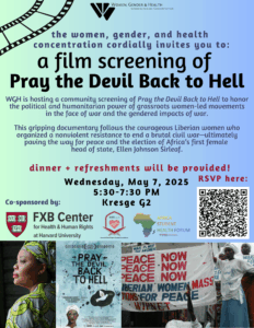 WGH and event co-sponsors are hosting a community screening of “Pray the Devil Back to Hell” to honor the political and humanitarian power of grassroots women-led movements in the face of war and…