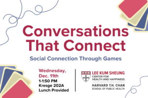 On Wednesday, December 4th, from 1-1:50 p.m. in FXB G12, please join us for the second installment in our Environments for Health and Happiness Seminar Series. This event will feature…