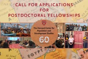 The Harvard Center for Population and Development Studies is now accepting applications for the 2025–2027 cohort of the David E. Bell postdoctoral training program, designed for researchers and practitioners in…