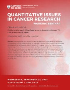 Omar Melikechi, Postdoctoral Research Fellow, Department of Biostatistics, Harvard University Integrated path stability selection Abstract: Feature selection aims to identify important features in a data set, which can lead to…