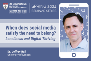 On Wednesday, May 1st, from 1-1:50 PM in FXB G12 and online, join us for “When does social media satisfy the need to belong? Loneliness and Digital Thriving“, a seminar…