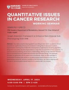 Kimberly Greco, PhD Student, Department of Biostatistics, Harvard T.H. Chan School of Public Health Graph Attention Framework to Enhance Rare Disease Sub-Phenotyping from EHR Abstract: Accurately sub-phenotyping patients according to…