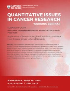 Elizabeth Graff, PhD Student, Department of Biostatistics, Harvard T.H. Chan School of Public Health Applications of Deep Learning for Graph-Structured Data: From Disease Spread to Social Networks Abstract: How can…