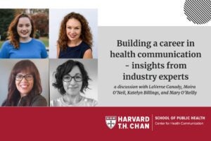 This health communication career panel will feature LaVerne Canady, Moira O’Neil, Katelyn Billings, and Mary O’Reilly. The first hour will feature the panelists reflecting on their careers in health communication…