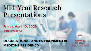 The Department of Environmental Health and the Occupational and Environmental Medicine Residency (OEMR) Program invite you to the next OEMR Mid-Year Research Presentations. Date: Friday, April 10, 2026 at 1:10pm…