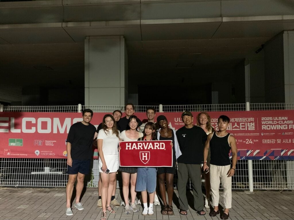 Pozas and fellow teammates representing Harvard at the Ulsan Rowing Festival in South Korea.
