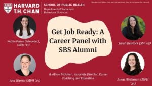 Please join us for an SBS seminar session to help you navigate the current public health job market. Hear from a panel of accomplished SBS alumni, including Ana Warner, Sarah…