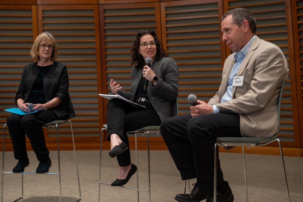 The third and final panel asked the question, “What policies can managers implement to create and maintain a healthy, happy workplace?” The session was moderated by Dr. Erika Sabbath, Associate Professor at Boston College School of Social Work and Co-director of the Harvard Center for Work, Health, and Wellbeing. It featured Dr. Glorian Sorensen, Research Professor of Social and Behavioral Sciences at the Harvard Chan School and Founding Director for the Harvard Center for Work, Health and Well-being, as well as Jonathan Isaacson, Chairman and CEO of The Gem Group.
