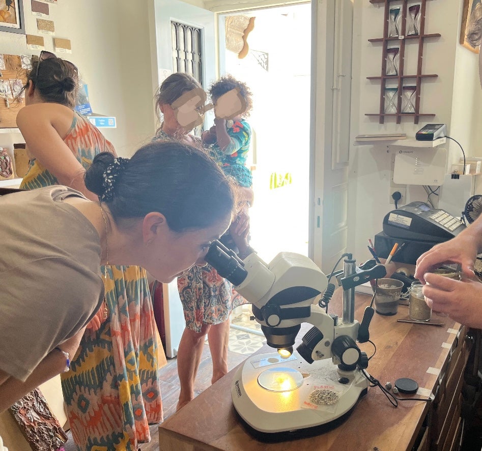 Despite noticing multiple initiatives in place aimed at reducing plastic waste, there were multiples times on the trip that I felt discouraged. In Milos, my family and I visited a small museum that collects sand from across the world. We had done our research and proudly brought sand from New Jersey, where I grew up, to contribute to the collection. The owner prepared our sand on a petri dish so we could look at it under a microscope. He also had a petri dish covered with plastic parcels filtered out of sand collected from Milos.