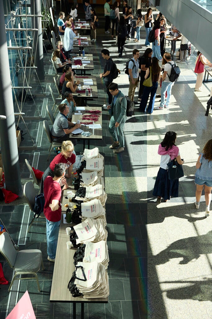 The three-day event began at the Joseph B. Martin Conference Center, where 449 new students from 66 countries and territories got a chance to mingle with each other and hear from Dean Andrea Baccarelli, who offered words of advice and encouragement.