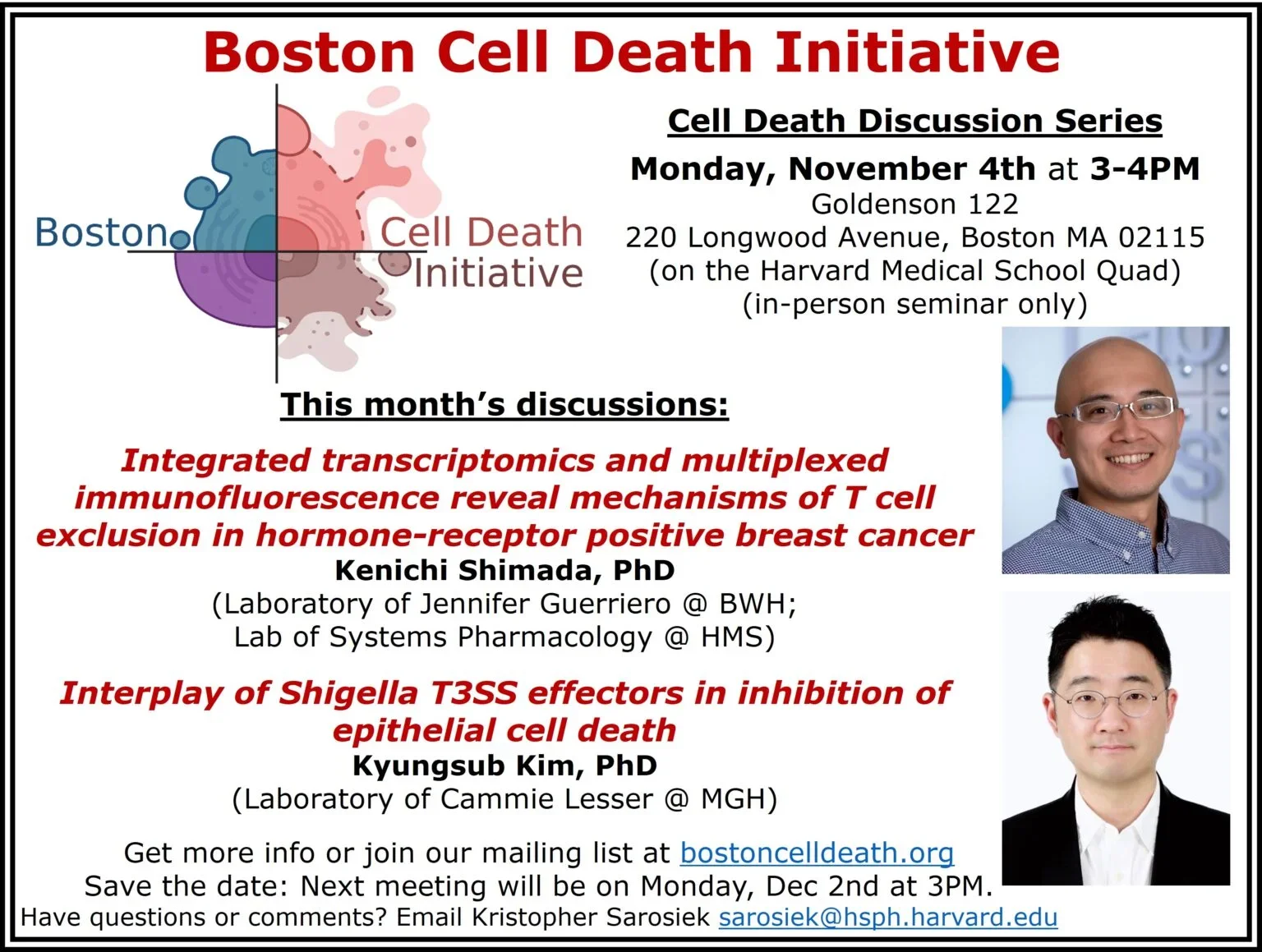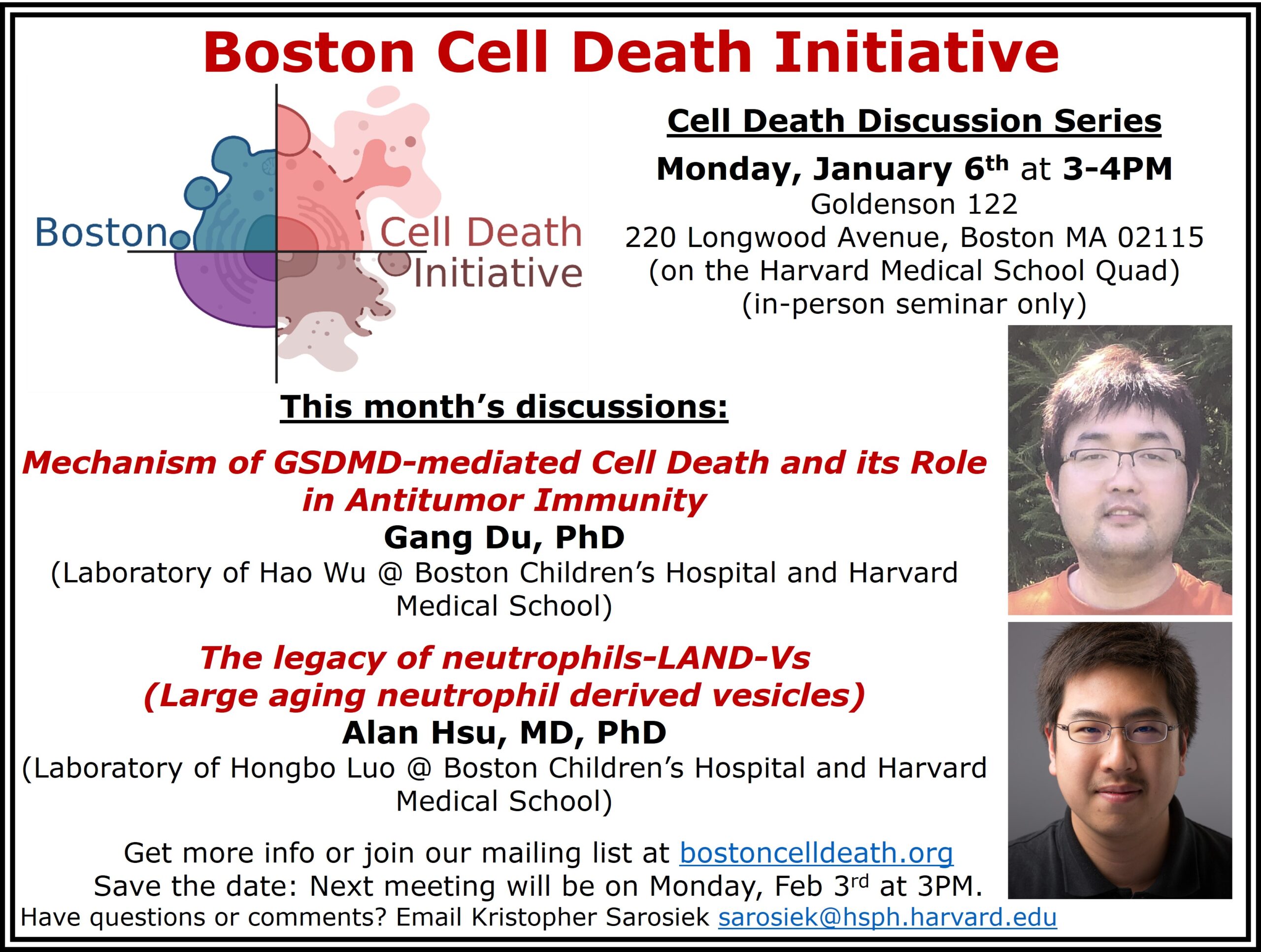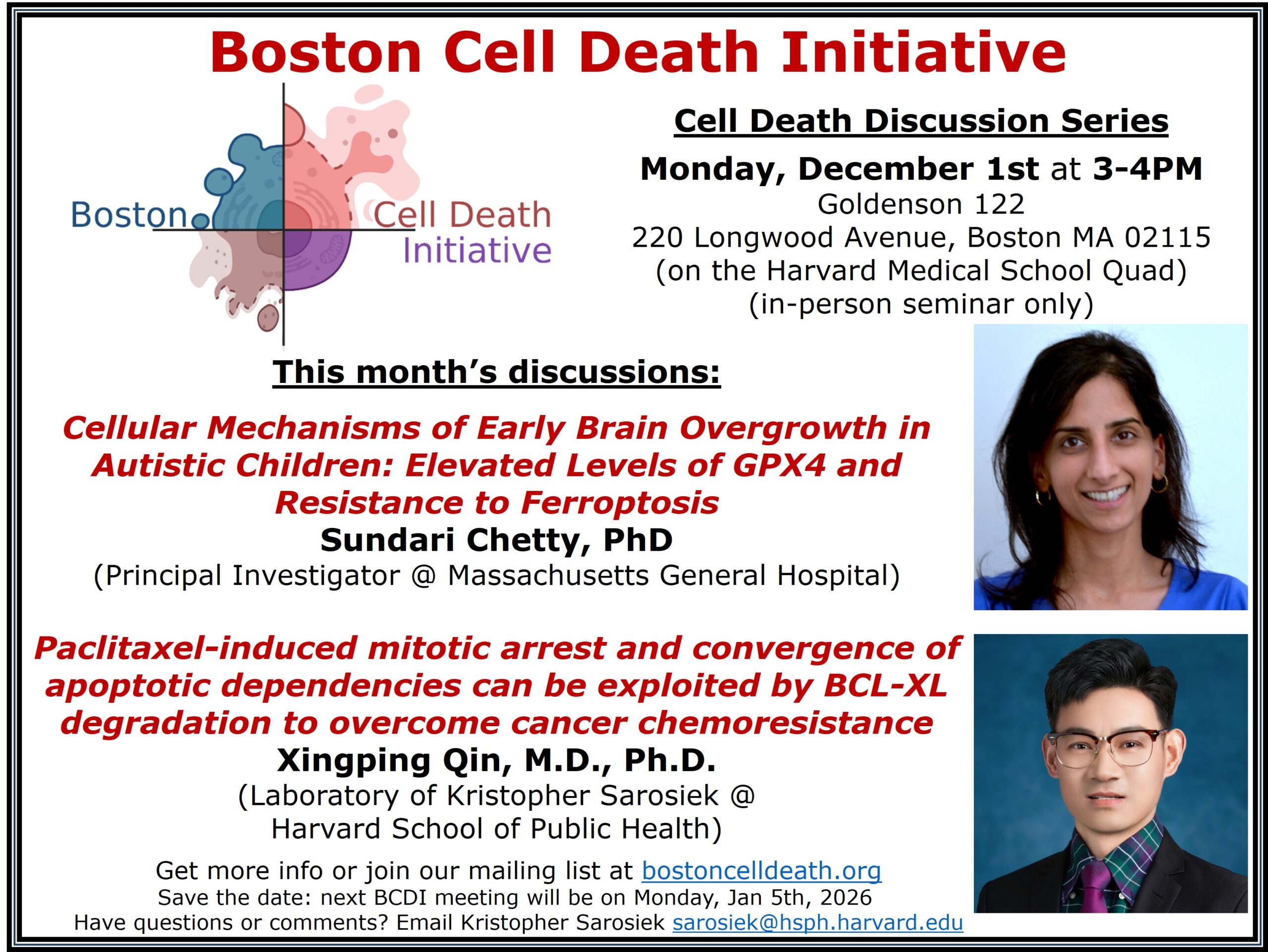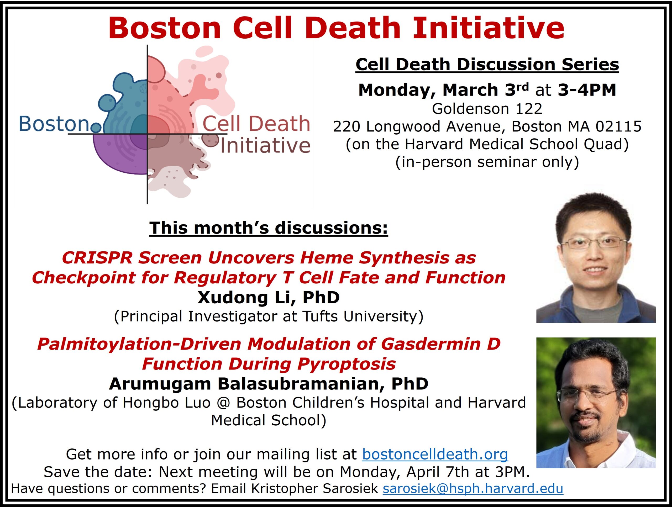 The Boston Cell Death Initiative brings together laboratories in the Boston area and beyond that work on various aspects of cell death.