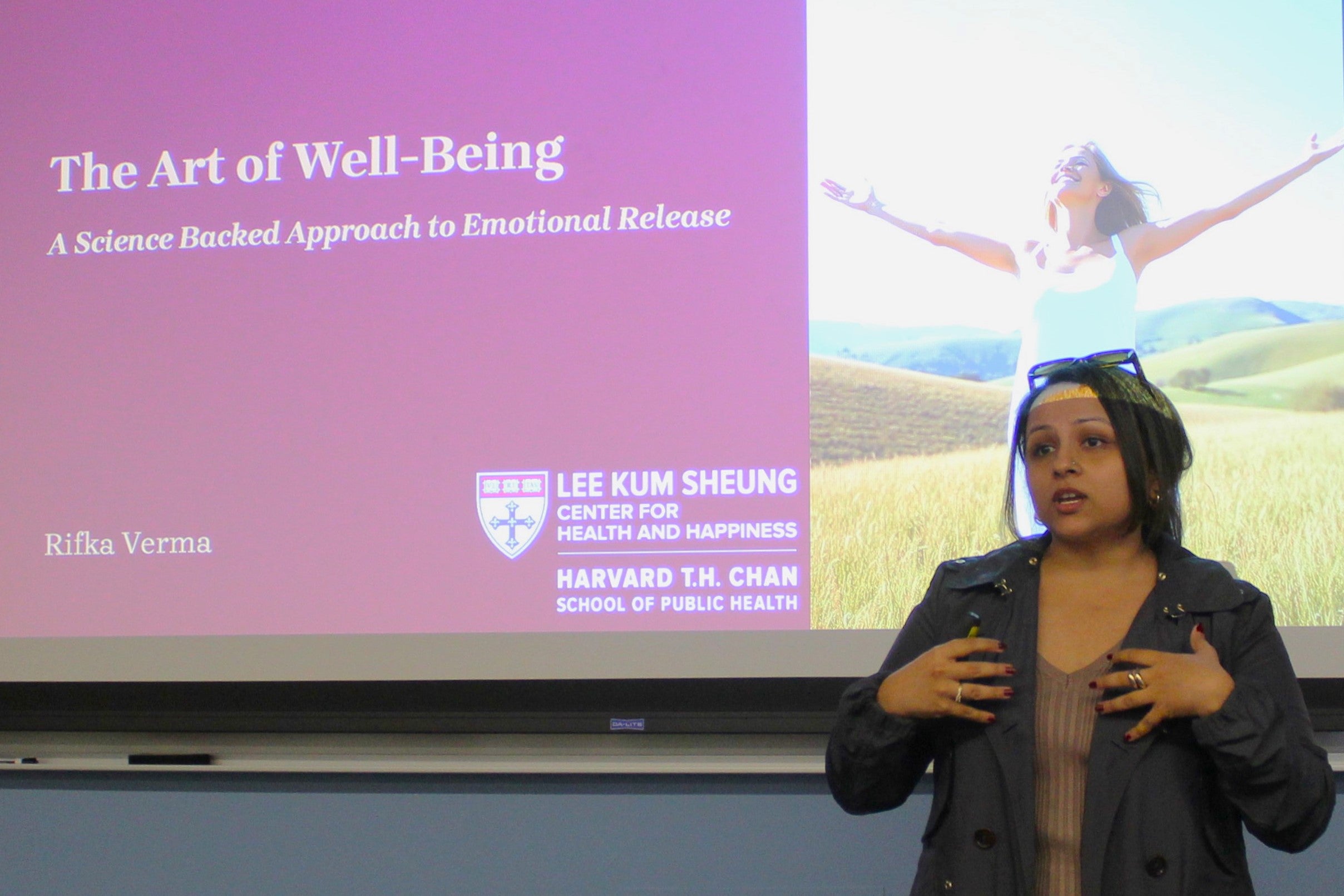 The goal of the Student Engagement Committee is to promote the science of positive health, happiness, and well-being, and help the Center to share its discoveries with the Harvard community through hands-on activities.