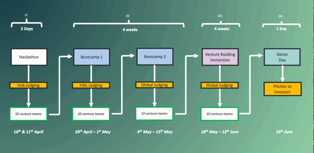 - Winning teams from each hub (50 teams total) advance to Venture Building Program