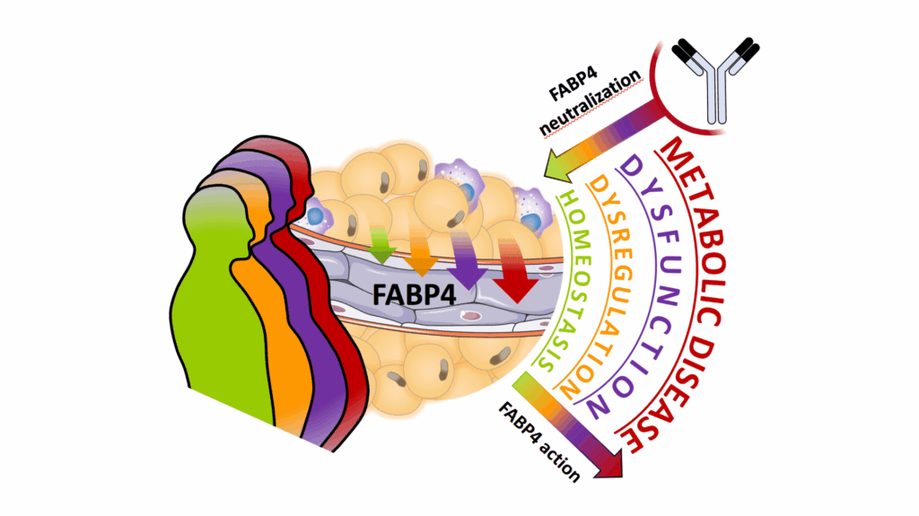 Remarkably, we demonstrated that aP2 neutralization with an antibody improved glucose tolerance and insulin sensitivity in obese mice. This strengthens our hypothesis that FABP4 is a promising target for the development of new diabetes therapeutics.