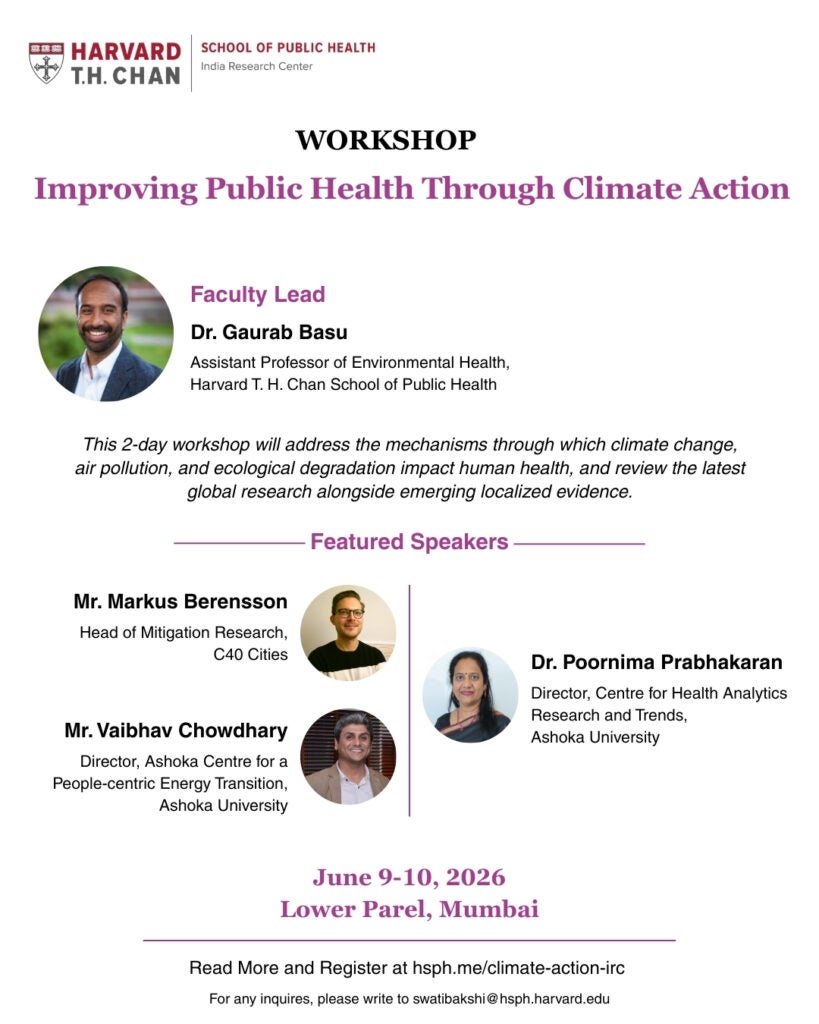 The India Research Center, based in Mumbai, serves as a hub for Harvard Chan School’s research projects, educational programs, and knowledge translation and communication work across India.