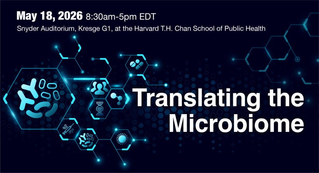 We are delighted to welcome everyone to the eighth annual Harvard Chan Microbiome in Public Health Center (HCMPH) symposium. As microbial community science expands across industry, clinical research, biotech, and pharma, this year’s theme – translating the microbiome – focuses on turning discovery into implementation. From the first approved live biotherapeutics to microbiome-informed cancer immunotherapy, the field is already reshaping how we understand health and develop therapies. The symposium will highlight recent advances while looking ahead to future opportunities, including microbial biochemistry in small-molecule drug development and engineering of microbial community members. As always, we hope to be joined by an audience that is both topically and geographically diverse, online and in person. The symposium program will include keynotes, invited talks, and selected presentations from poster submissions. We collect a nominal fee for in-person registration, with virtual attendance available for free. Refreshments and a poster presentation are offered on-site, and support for social media and interactive participation are provided for online attendees.